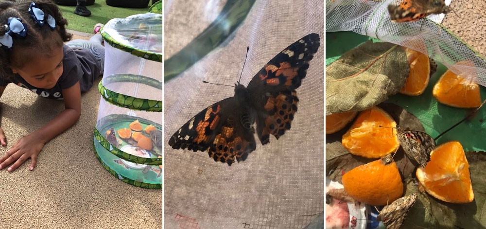 The children have been very enthusiastic and have enjoyed talking about the food they have been feeding to the butterflies and how much they have grown. We observed the butterflies one last time before releasing them and the children were so happy when the butterflies landed on their hands to say goodbye!
